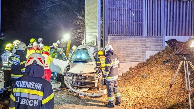 Schwerer Vekehrsunfall in der Nacht auf Samstag auf der Südautobahn bei Mooskirchen (Bezirk Voitsberg): Eine Weststeirerin krachte gegen das massive Tor eines Serviceparkplatzes. Die Frau wurde dabei verletzt und im Wrack eingeklemmt.