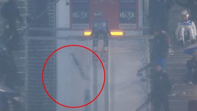 What was going on? While Lindvik was preparing for his jump, skis slid down the inrun track. "Where did they come from?" asked ORF commentator Michael Roscher.