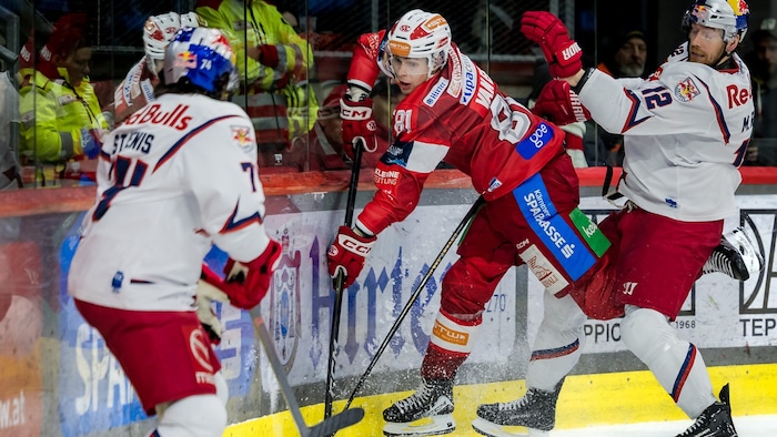 Red Bull Salzburg hat als zweites Team nach dem KAC das Play-off-Ticket in der ICE Hockey League sicher. Der Titelverteidiger setzte sich am Sonntag im Schlager der 43. Runde beim Tabellenführer aus Kärnten in einer packenden Partie mit 4:3 durch und rückte diesem bis auf vier Punkte nahe.