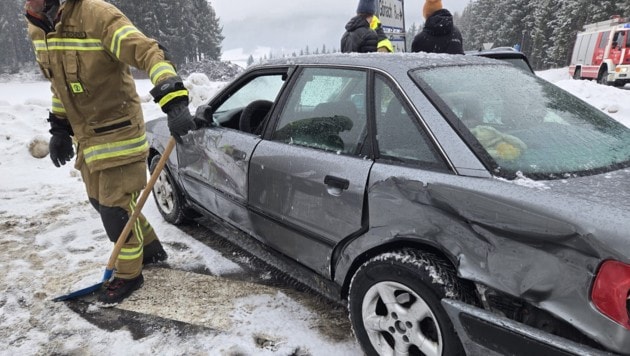 Auf schneeglatter Fahrbahn kam es am Sonntagnachmittag im Kreuzungsbereich der Turracher Straße (B95) und der Lintschinger Landesstraße (L248) am Passeggen zu einem Unfall zweier Pkw.
