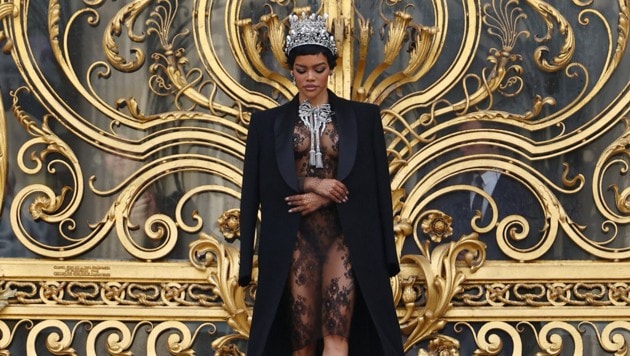 Und das lag nicht nur an der funkelnden Krone, die sie bei ihrem Auftritt vor der großen Schau von Schiaparelli in der französischen Modemetropole am Haupt trug. Sondern auch an ihrem Look, der den Mitgliedern des europäischen Hochadels wohl die Schamesröte ins Gesicht treiben würde.