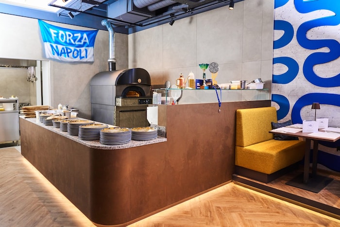 Im Mittelpunkt steht weiterhin traditionelles Pizzahandwerk. Der Teig reift rund 48 Stunden, viele Zutaten stammen aus Italien. Gearbeitet wird mit bewusst schlanker Karte – mit Fokus auf Qualität, Technik und Handwerk. Das Interieur des neuen Restaurants ist dafür umso moderner gestaltet und bildet einen bewussten Kontrast zur traditionellen Pizzabackkunst.