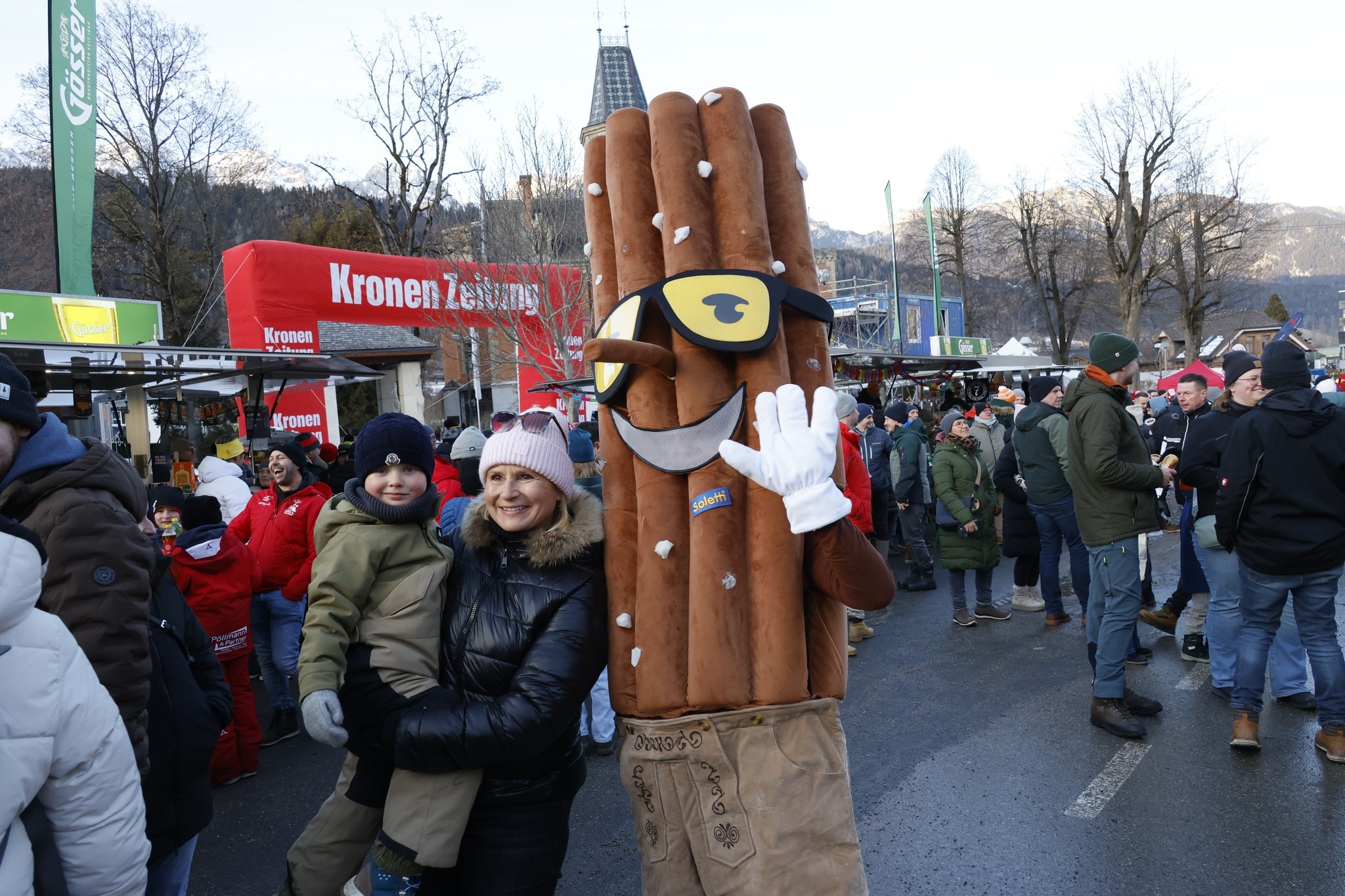 Vielen von ihnen war durch bedruckte Jacken, T-Shirts und Fahnen schon von Weitem die Begeisterung für ihren Favoriten anzusehen. „Wir sind zum zweiten Mal aus der Schweiz nach Schladming gekommen. Die Stimmung hier ist einfach super und die Leute sind immer freundlich und gut drauf. Im Riesentorlauf drücken wir Marco Odermatt die Daumen, im Slalom dann Loic Meillard“, erzählte eine Gruppe Fans und präsentierte stolz die Schweizer Fahne.