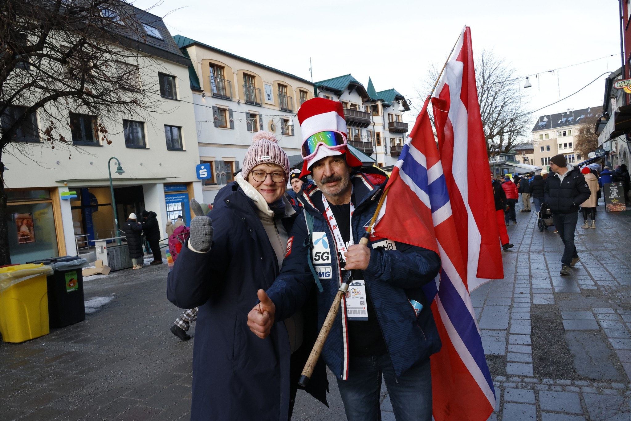 Der große Fahnenmast mit einer österreichischen und einer norwegischen Flagge stach besonders aus der Menge heraus. Seine Träger waren keine Geringeren als Onkel und Tante des norwegischen Cheftrainers Michael Rottensteiner: „Natürlich feuern wir heute Atle Lie McGrath an, das ist ja Familie. Aber unsere Daumen sind selbstverständlich auch für die Österreicher gedrückt“, sind sich die beiden einig und erinnern stolz daran, dass ja auch Manuel Feller Mitglied im „Atle Lie McGrath Fanclub Steiermark“ ist.