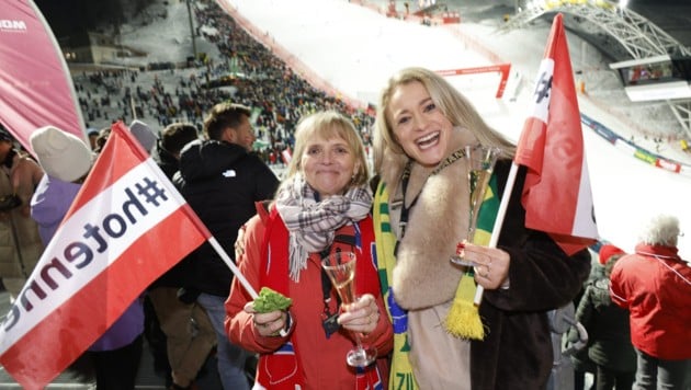 Party, Party, Party! Schladming verwandelte sich bei der ersten von zwei Flutlicht-Shows erneut in ein Fahnenmeer. Beim Skifest sind viele Nationen vereint. Auch die Prominenz staunte nicht schlecht.