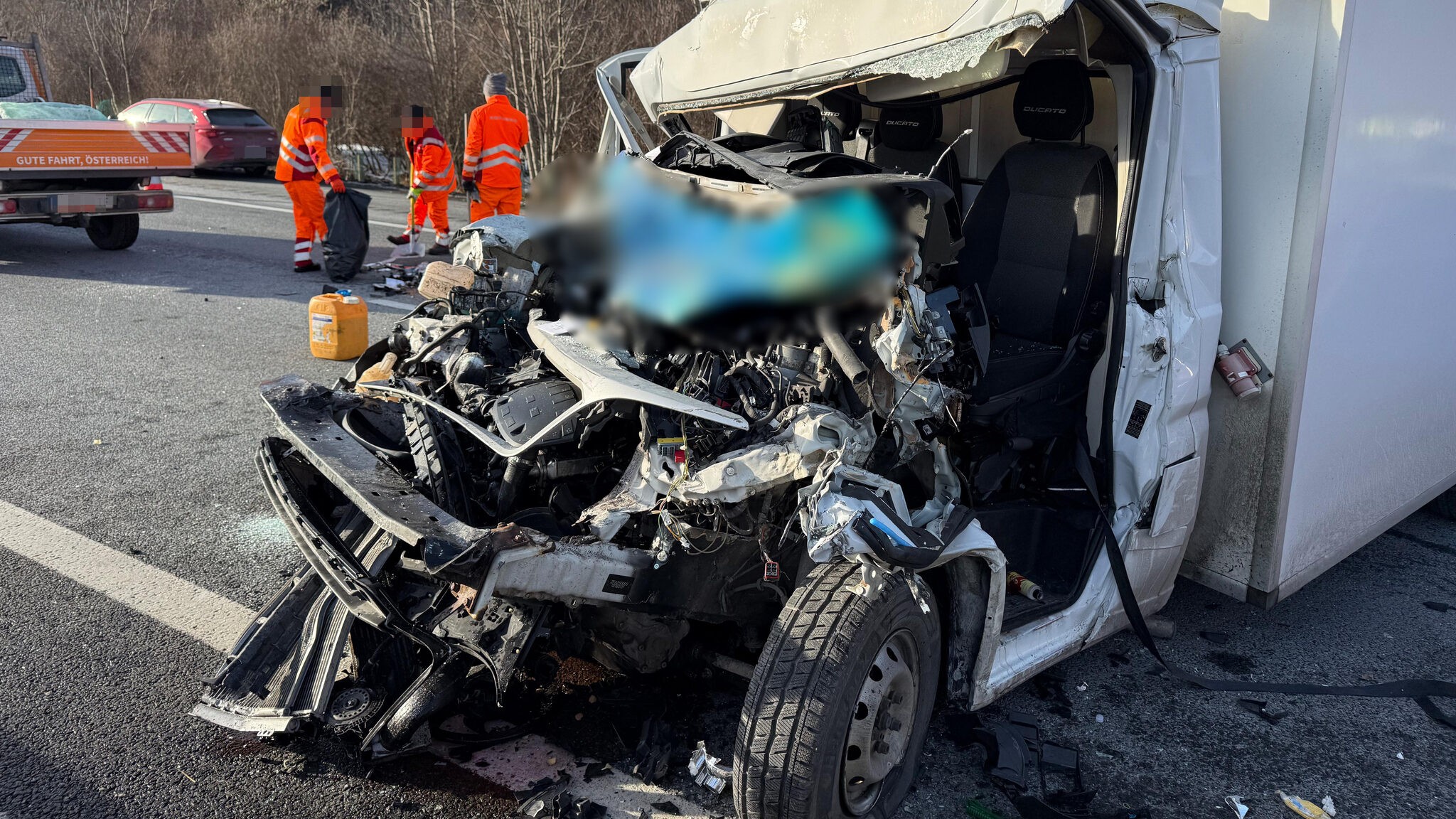 Dienstagnachmittag, 14.15 Uhr, Radfeld im Bezirk Kufstein: Ein 48-jähriger Einheimischer fuhr mit seinem Kleintransporter auf der A12 Inntalautobahn am rechten Fahrstreifen in Richtung Innsbruck. Aufgrund von Überlastung war es – wieder einmal – zu einem Lkw-Stau gekommen. Aus unbekannter Ursache übersah der 48-Jährige das Stauende. Nahezu ungebremst krachte er mit dem Klein-Lkw gegen einen bereits stehenden Sattelschlepper.