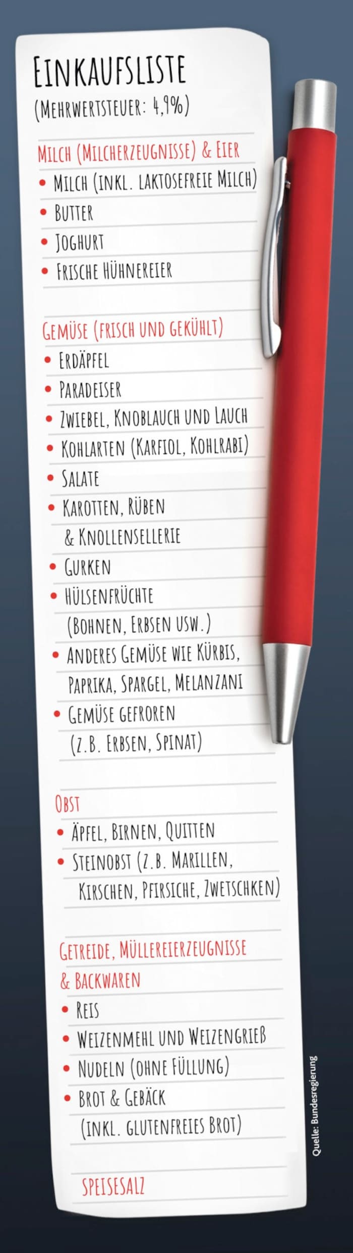 Billigere Quitten auf der Quittung und Joghurt statt Schlagobers: Die Liste an Lebensmitteln, die ab Juli steuerlich begünstigt werden, liegt der „Krone“ nun vollständig vor – und Fleisch fehlt. Inkludiert sind seitens der Regierung dafür mittlerweile auch Maßnahmen zur Gegenfinanzierung des Steuerzuckerls, das uns alleine heuer noch 200 Millionen kosten wird.