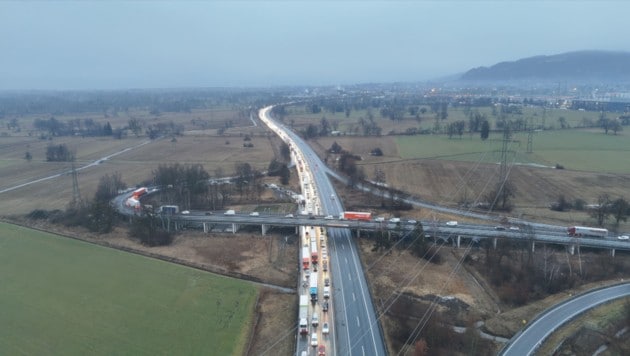 Die Folge des Unfalls war massive Staubildung. Die Blechlawine reichte sogar über den Grenzübergang nach Deutschland in Hörbranz hinaus. Auch in die Gegenrichtung kam es schließlich zu Verzögerungen.