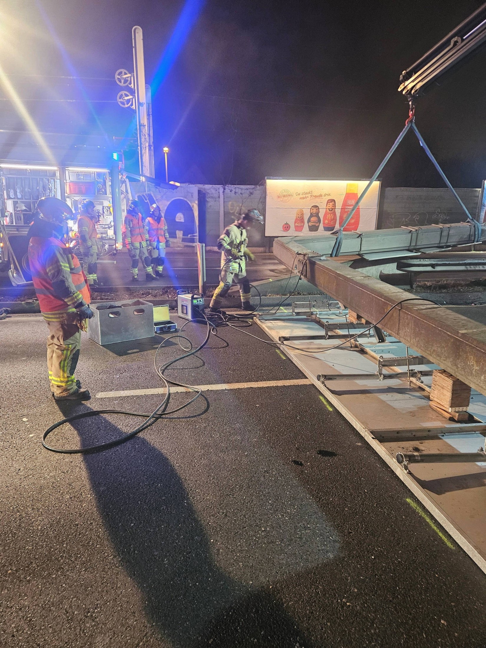 Auf Anforderung der Polizei wurde auch die Drohne der Feuerwehr zur Einsatzstelle beordert. Die Luftaufnahmen werden das Unfallkommando bei der Ermittlung des Unfallherganges unterstützen.