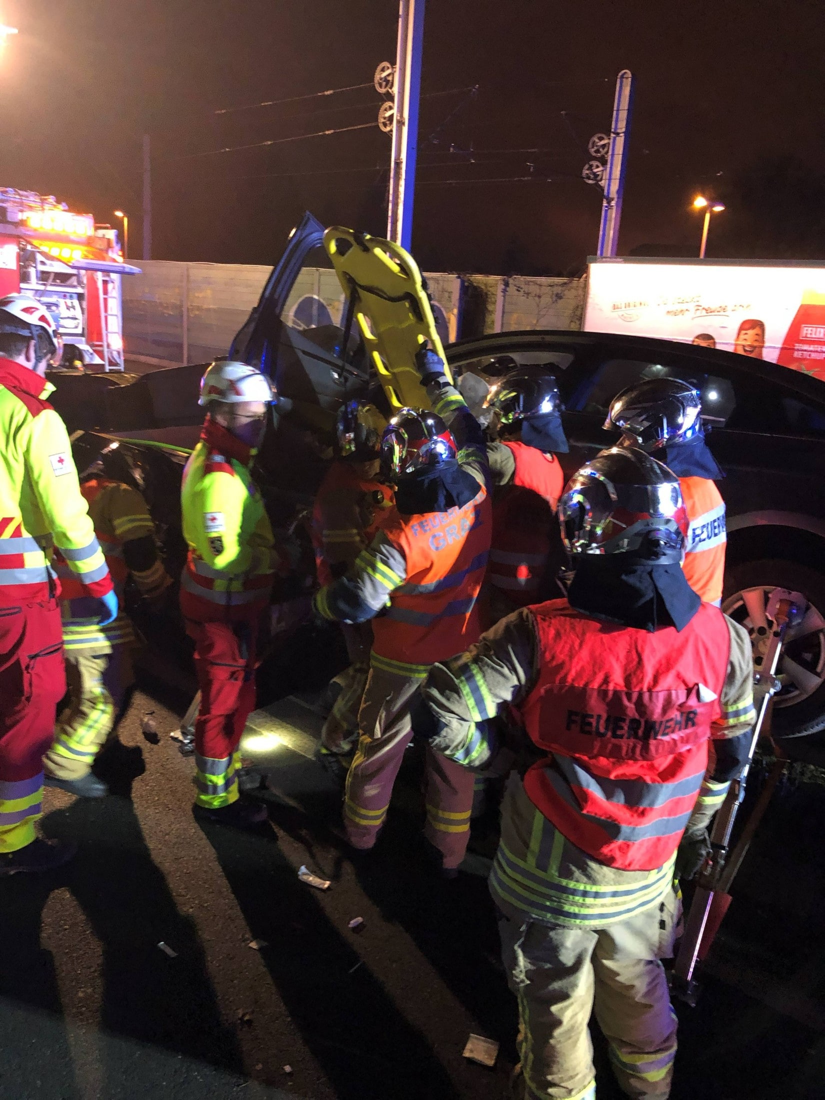 In Graz krachte am Freitagabend ein Pkw gegen einen Überkopfwegweiser. Die Lenkerin des Fahrzeugs wurde dabei eingeklemmt und musste von der Feuerwehr gerettet werden. Fünf Personen wurden teils schwer verletzt.