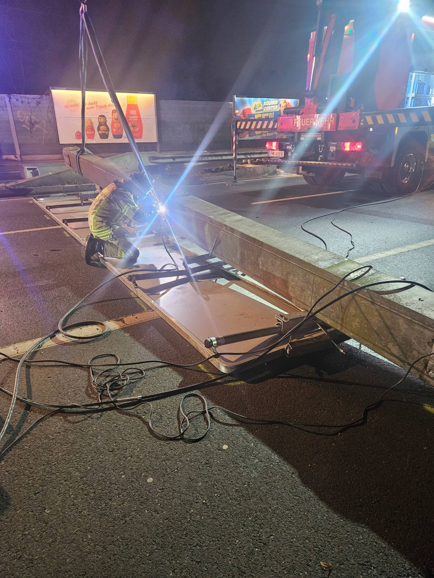 Die Berufsfeuerwehr Graz stand mit mehreren Fahrzeugen im Einsatz. Am Unfallwagen entstand ein Totalschaden, er musste abgeschleppt werden. Mitarbeiter der Holding Graz koordinierten die Aufräum- und Sicherungsarbeiten der beschädigten Verkehrseinrichtung.Die Liebenauer Tangente war im betroffenen Bereich für die Dauer des Einsatzes gesperrt.