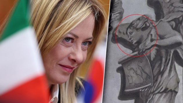 Was ist denn da passiert? Das Gesicht der italienischen Ministerpräsidentin Giorgia Meloni findet sich plötzlich auf einem Engel in der römischen Basilika San Lorenzo in Lucina wieder. Ein ehrenamtlicher Helfer hätte sich bei einer Restaurierung im Inneren der Kirche kreativ ausgetobt.