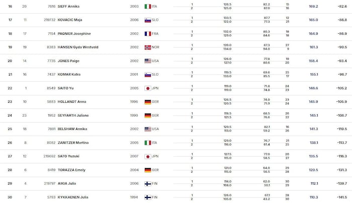 Als einzige Österreicherin am Start landete Julia Mühlbacher wie am Vortag auf Rang 13. Lisa Eder sagte, gesundheitlich angeschlagen, ihren Start ab.