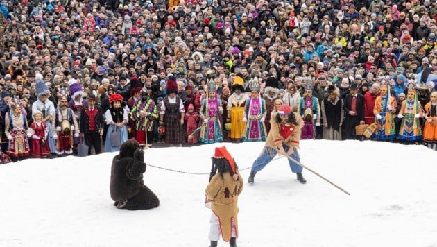 Was die Besucher am Sonntag zwischen Hotel Post und Majenbrunnen bestaunen durften, ist eine über Jahrhunderte gepflegte Tradition, die zu den farbenprächtigsten Fasnachten des Alpenraumes gehört. Eine außergewöhnlich elegante Fasnacht mit seidigen Gewändern, aufwendigen Masken, prächtigem Kopfschmuck und kunstvollen Stickereien – seit 2012 Immaterielles Kulturerbe der UNESCO. Begleitet vom Klang der Scheller und dem Geschrei der Hexen, vom Juchzer der Sackner und dem Knall der Goasln geht es durchs Dorf. Und immer wieder schließt sich der Kreis um den Kampf Frühling gegen Winter.