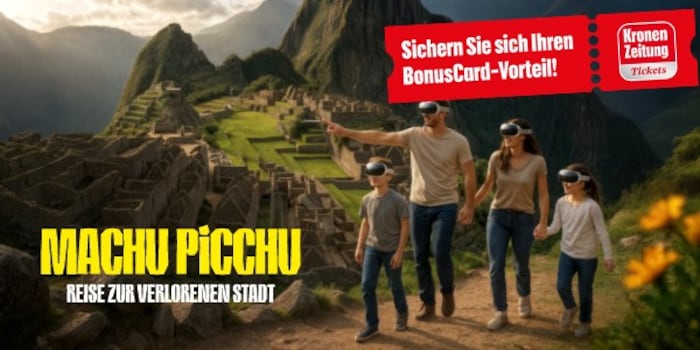 Seit der feierlichen Eröffnung im Oktober 2025 lockt das Immersive Center Donauturm mit der Ausstellung „Machu Picchu: Reise zur verlorenen Stadt“ und der Andrang lässt nicht nach. Tickets erhalten Sie mit BonusCard-Rabatt im Krone Ticketshop unter ticket.krone.at!