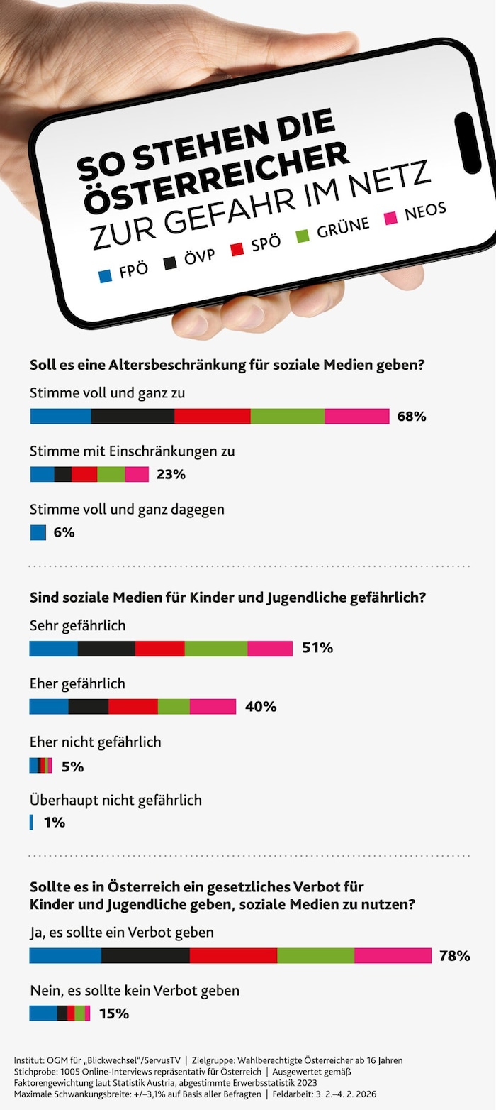 Es ist ein politischer Paukenschlag in der Debatte um die Gefahren für Kinder im Netz: Eine klare Mehrheit der Österreicher spricht sich laut einer neuen Umfrage des OGM-Instituts für ServusTV für die Schaffung der so heiß diskutierten Altersgrenze aus.