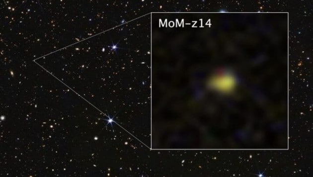 Die Entdeckung basiert auf Daten, die das „James Webb Space Telescope“ (JWST) im April 2025 gesammelt und zur Erde gefunkt hat. Die Galaxie mit dem wissenschaftlichen Namen MoM-z14 existierte bereits 280 Millionen Jahre nach dem Urknall. Sie biete einen Blick in die sogenannte kosmische Morgendämmerung, eine Ära, in der sich die ersten Sterne und Galaxien bildeten.