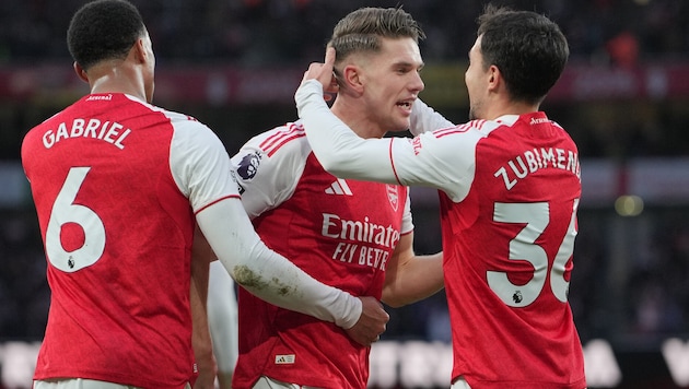 Arsenal hat seine Tabellenführung in der englischen Fußball-Premier-League vorübergehend auf neun Punkte ausgebaut. Die Londoner landeten am Samstag dank Toren von Martin Zubimendi (42.) und Viktor Gyökeres (66., 93.) einen 3:0-Heimsieg gegen Sunderland.