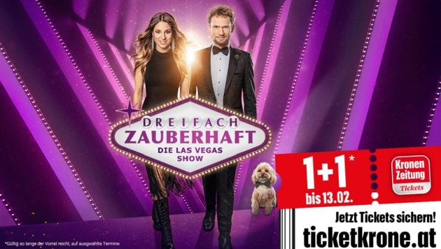 Sie zählen zu den erfolgreichsten und beliebtesten Magiern der Welt: Thommy Ten & Amélie van Tass gastieren mit ihrer spektakulären Produktion „Dreifach zauberhaft – Die Las Vegas Show“ im März gleich dreimal im VAZ St. Pölten – und mit der „Krone“ profitieren Sie aktuell von einer exklusiven 1+1-Ticketaktion unter ticket.krone.at