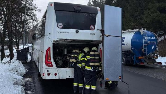 Die Feuerwehr hat in Lendorf in Kärnten einen qualmenden Reisebus verfolgt. Der Rauch war aus dem Motorraum des Fahrzeuges gekommen. Im Bus befanden sich etwa 50 Kinder.