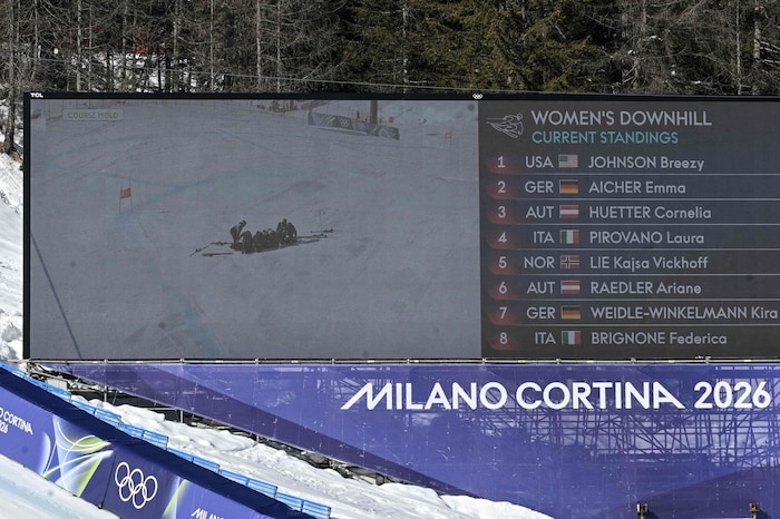 Vonn ist bei ihrem Versuch, noch einmal Olympia-Gold in der Abfahrt zu holen, bereits wenige Sekunden nach ihrem Start gestürzt. Die US-Amerikanerin, die mit 41 Jahren und trotz eines Kreuzbandrisses im linken Knie als eine der Favoritinnen galt, wurde am Sonntag auf der Olimpia delle Tofane in Cortina d‘Ampezzo noch vor der ersten Zwischenzeit ausgehebelt und schlug danach auf der Piste auf. Ihre Skier lösten sich bei der Landung nicht von den Schuhen.