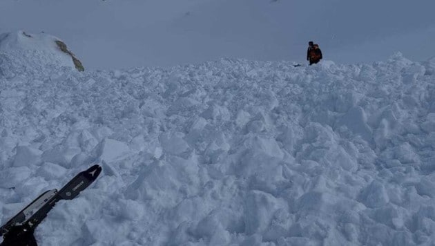 Rund 60 Meter breit und 300 Meter lang war das Schneebrett laut Bergrettung. Der Mann wurde teilverschüttet. Nur seine Hand schaute heraus. Er konnte dadurch rasch geortet und von seinen Kameraden gerettet werden.