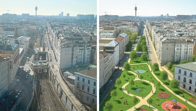 Dass eine komplette Überplattung des S-Bahn-Schachts bis hinunter zum Rennweg schwierig wäre, räumen auch die technisch versierten Ideengeber Bernhard Eichinger und August Sarnitz ein. Das wäre wegen der Niveau-Unterschiede, aber auch aus Sicherheitsgründen (Stichwort Tunnel-Evakuierung) kaum zu stemmen – von den nötigen Geldmitteln in der derzeit angespannten Budgetlage der Stadt ganz zu schweigen.