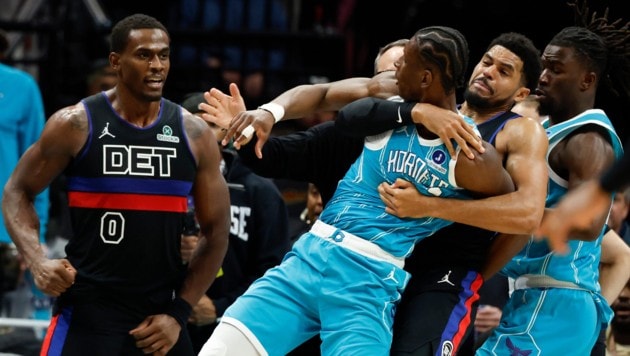 Zuerst stehen sich zwei Spieler Kopf-an-Kopf gegenüber, dann folgen wilde Szenen. Beim Sieg von Eastern-Conference-Spitzenreiter Detroit Pistons bei den Charlotte Hornets flogen auch die Fäuste. Vier Profis und später auch der Coach der Gastgeber wurden vom NBA-Spiel ausgeschlossen, das die Pistons mit 110:104 gewannen. „Es sah so aus, als wären zwei Männer in eine hitzige Diskussion verwickelt. Und dann eskalierte die Situation einfach“, sagte Charlotte-Coach Charles Lee.