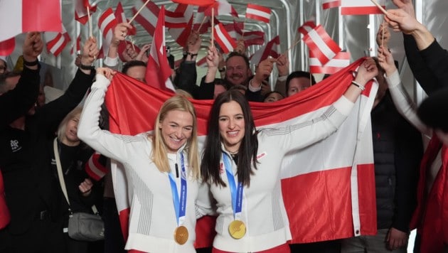 Bei diesem Ski-Märchen freuten sich wirklich alle mit! Deshalb riss Österreichs Ski-Team gestern mit den Überraschungs-Olympiasiegerinnen Katharina Huber und Ariane Rädler im Austria House in Vollbesetzung und im wahrsten Sinne des Wortes die Hütte ab. Die erste Olympia-Goldene unserer alpinen Mädels seit 2014 (Anna Veith in Sotschi) musste schließlich gebührend gefeiert werden.