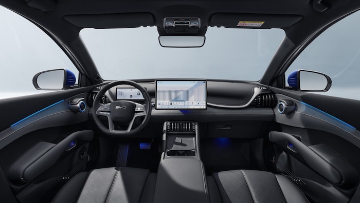 Das Cockpit präsentiert sich aufgeräumter als bisher. Neu ist ein auf 8,8 Zoll gewachsenes Kombiinstrument, während der drehbare Touchscreen seine Größe von 15,6 Zoll behält. Das Infotainment-System integriert Google-Dienste sowie eine sprachgesteuerte Assistenz mit cloudbasierter KI. Der Fahrwahlhebel wurde an die Lenksäule verlegt, was Platz in der Mittelkonsole schafft. Je nach Ausstattung sind ein Head-up-Display, beheizbare Rücksitze und ein Panorama-Glasdach erhältlich.