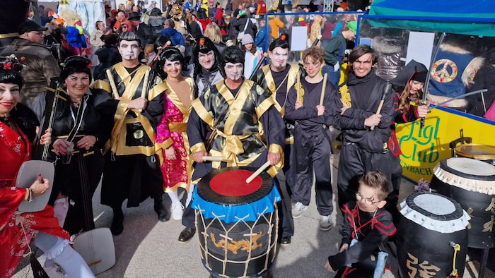 Zunächst bei Sonnenschein tummelten sich die Narren am Platz, auch späterer Regen konnte die bereits überschäumende Stimmung in den kleinen Zelten kaum bremsen.