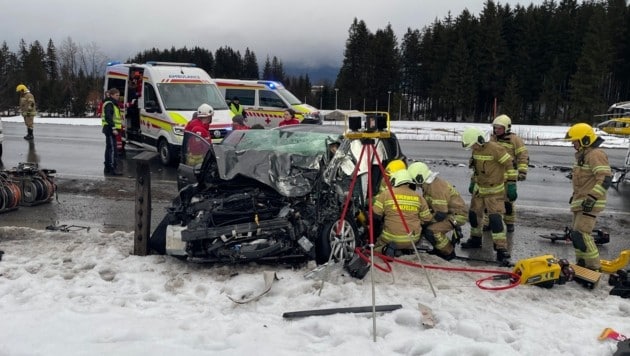 Eine Person musste am Donnerstagnachmittag im Saalfeldener Ortsteil Harham von der Feuerwehr aus dem stark zerstörten Auto befreit werden.