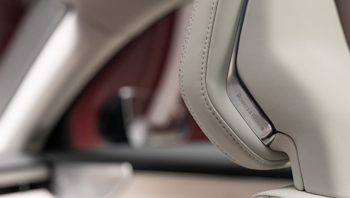 3,10 Meter Radstand und 2,05 m Breite (ohne Außenspiegel) sorgen für opulente Platzverhältnisse unter dem serienmäßigen Glasdach. Allerdings muss man hinten stark die Beine anziehen, was für Erwachsene auf Dauer unbequem ist. Außerdem kann man die Füße nicht unter den Vordersitz stellen. Da hilft es auch nicht, dass man sich zwischen den Sitzreihen via Soundsystem und Lautsprechern in den Kopfstützen unterhalten kann.
