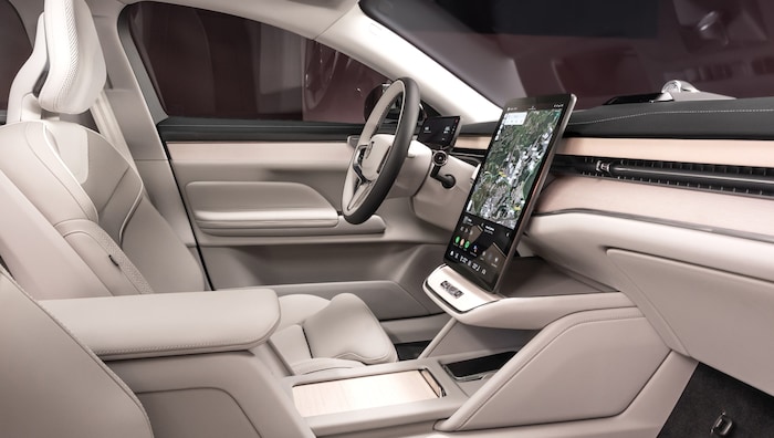 Skandinavisch-kühl der Innenraum, mit offenporigem (FSC-zertifiziertem) Holz und viel Recycling-Material, aber ohne Haltegriffe. Einziges analoges Bedienelement im Cockpit: eine elegante Lautstärkewalze unterm 14,5-Zoll-Touchscreen.
