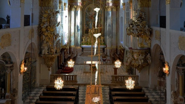 Die heurige Fasteninstallation wird erstmals auch in die Osterzeit hineinreichen. Denn mit der Botschaft der Todeswunde zu enden, hieße, sich mit der halben Wahrheit zufriedenzugeben, heißt es im begleitenden Kunstflyer.