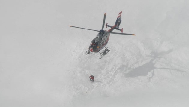 Um weitere Verschüttete auszuschließen, wurde der Lawinenkegel aufgrund der vorherrschenden großen Lawinengefahr durch einen am Tau hängenden Flugretter mittels LVS-Gerät abgesucht. Dabei konnten mehrere Lawinenanrisse im gesamten Bereich festgestellt werden. „Der Sucheinsatz musste aufgrund der Wetterverschlechterung unterbrochen werden, zwischenzeitlich durchgeführte Abklärungen ergaben keine Hinweise auf weitere beteiligte Personen, weshalb der Einsatz um 15.30 Uhr beendet wurde“, berichtet die Exekutive.