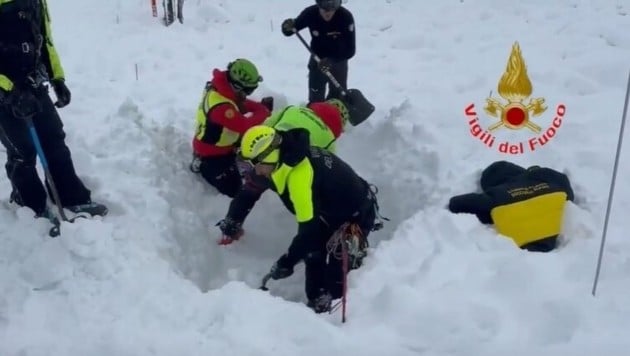 Unglück in den italienischen Alpen: Eine Lawine hat vier Männer auf Schneemobilen mitgerissen. Der Fahrer landete in einem eiskalten See. Nach ihm wird aktuell fieberhaft gesucht.