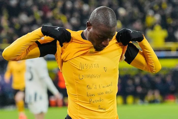 Mit einer emotionalen Botschaft hat Serhou Guirassy beim 2:0 von Borussia Dortmund gegen Atalanta Bergamo im Champions-League-Play-off-Hinspiel für Aufsehen gesorgt. Nach der Partie am Dienstagabend erklärte der Stürmer seinen traurigen Jubel.