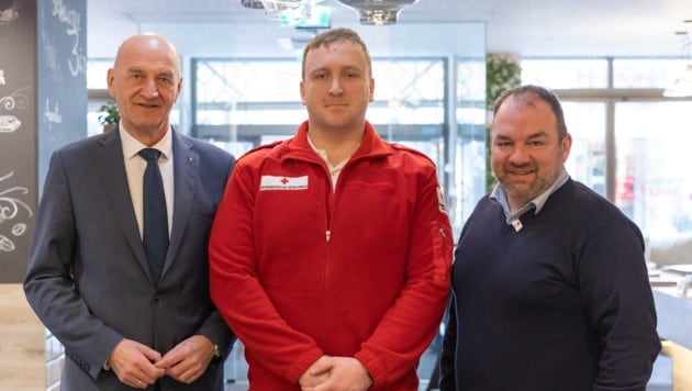 Für Landesrat Christian Dörfel (ÖVP) ist Artur Kuzenko ein Paradebeispiel gelungener Integration in Oberösterreich. Der 35-Jährige floh nach Ausbruch des Kriegs mit nichts aus der Ukraine – heute hilft er beim Roten Kreuz seinen Landsleuten, hier Fuß zu fassen.