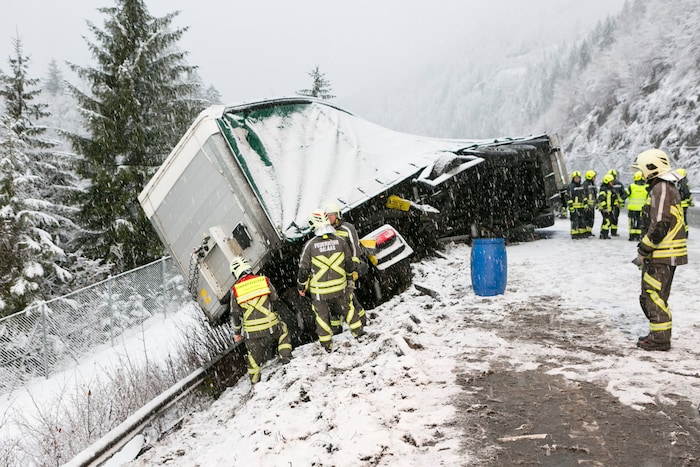 Am frühen Freitagmorgen gegen 6.45 Uhr war auf der S16 ein Lkw in Fahrtrichtung Bregenz unterwegs. Kurz nach dem Dalaaser Tunnel verlor der Lenker plötzlich auf schneeglatter Fahrbahn die Kontrolle über sein Gefährt. Dieses kam rechts von der Straße ab und stürzte über eine Böschung. Dabei wurde das Zugfahrzeug nach hinten abgeknickt, was die Bergearbeiten erheblich erschwerte.