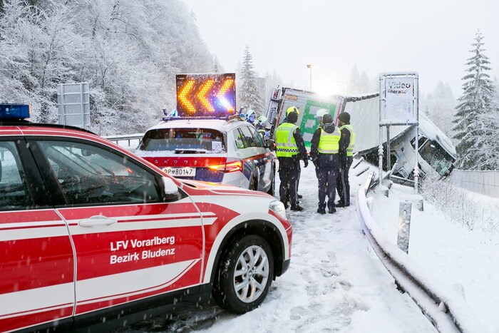 Die winterlichen Verhältnisse sorgten am Freitagmorgen auf Vorarlbergs Straßen für reichlich Chaos: So kam es auf der Schnellstraße S16 gleich zu zwei Unfällen mit Lastern.