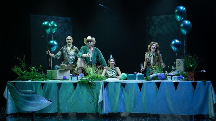 Das Theater feiert sich in „Wölfe, Lämmer, Polaroids“ selbst mit Selbstironie, Narzissmus und Liebe zur Rollenarbeit. Alle Facetten, die Theater haben kann, werden gezeigt: von elementarem Spiel mit Körper und Stimme, von Tanz bis zur Opulenz, etwa mit einer detailverliebten Waldkulisse oder Rauch- und Lichtshows.