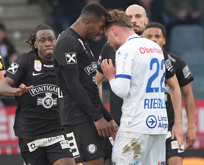 Es war in der 90. Minute, Sturm führt, Linz drängt auf den Ausgleich. Dann bekommt Mitchell plötzlich einen Krampf, Riegler hilft seinem Gegenspieler. Aber nur halbherzig. Sturms Verteidiger steht auf und wird vom Linzer wieder zu Boden gestoßen – dann wird es hitzig. Am Mittelkreis stehen die beiden Streithähne Kopf-an-Kopf, Riegler fällt um und Mitchell sieht Rot!