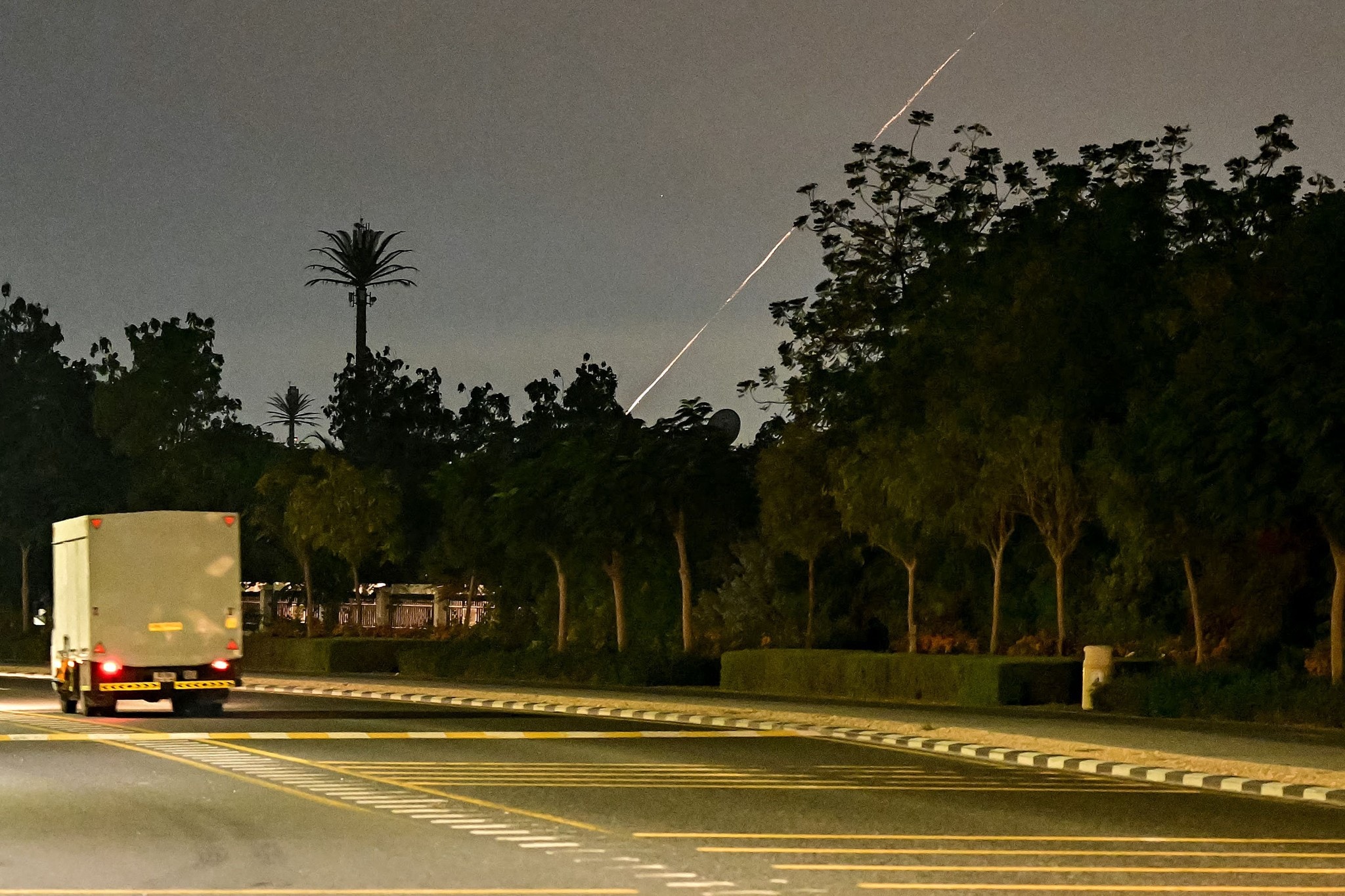 Augenzeuge zufolge gab es auch auf der bekannten künstlichen Inselgruppe The Palm in Dubai eine Explosion. Die örtlichen Behörden bestätigten am Samstag einen „Vorfall“ und ein Feuer in dem Gebiet. Dabei seien vier Menschen verletzt worden.