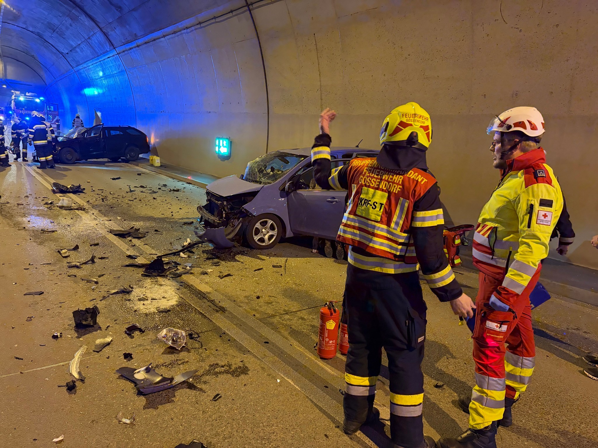 Am Freitag gegen 22.50 Uhr war eine 59-jährige Grazerin mit ihrem Pkw auf der B73 bei Hausmannstätten (Bezirk Graz-Umgebung) unterwegs. Im Himmelreichtunnel kam ihr ein 25-Jähriger aus dem Bezirk Südoststeiermark entgegen. Aus bislang ungeklärter Ursache kam es im Tunnel zu einer frontalen Kollision der beiden Fahrzeuge.