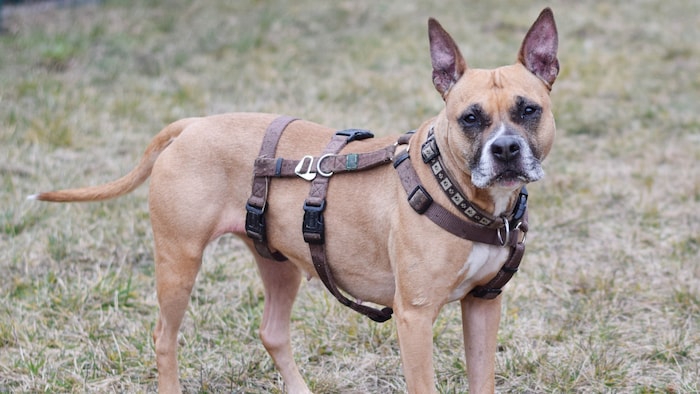 Amstaff-Mischlingshündin Annika (zwei Jahre) ist noch unsicher, jedoch lernwillig und hat bereits große Fortschritte gemacht. Ein ruhiges Zuhause im ländlichen Raum – idealerweise mit Zweithund – wird gesucht. Interessenten melden sich unter hundevergabe@tierquartier.at oder 01/73 41 10 20.