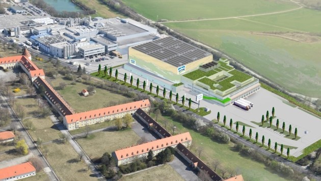 Bereits im Vorjahr erfolgte der Spatenstich, bis Mitte 2027 soll das hochmoderne NÖM-Logistikzentrum in Baden fertig sein und sich auch optisch perfekt in die umliegende Landschaft einfügen.