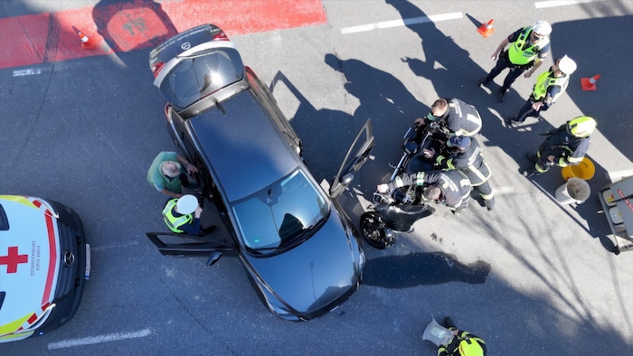 Durch die Wucht des Aufpralls kam der Motorradfahrer zu Sturz. Er erlitt nach ersten Erkenntnissen Brüche an beiden Unterarmen. Der Lenker des Autos kam mit dem Schrecken davon. An dem Pkw und dem Motorrad entstand erheblicher Sachschaden.