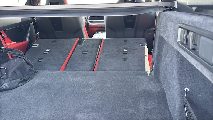 Links und rechts vom Kardantunnel verteilen sich 18,6 kWh, die nicht nur zur maximalen Power beitragen, sondern bis 140 km/h auch rein elektrisches Fahren ermöglichen. Offiziell 60 bis 66 km, tatsächlich waren es über 50. Dafür gibt es einen eigenen Fahrmodus.