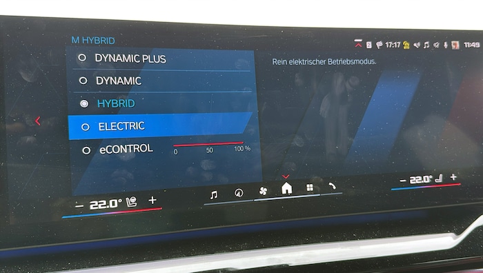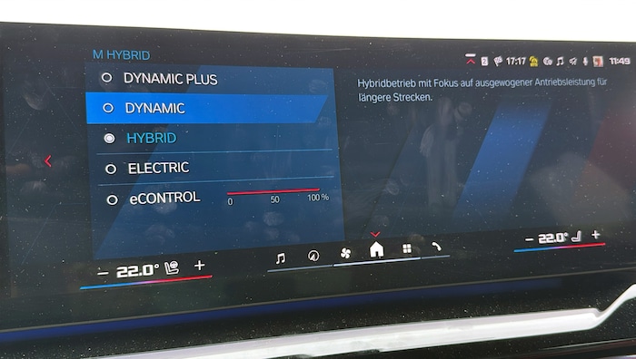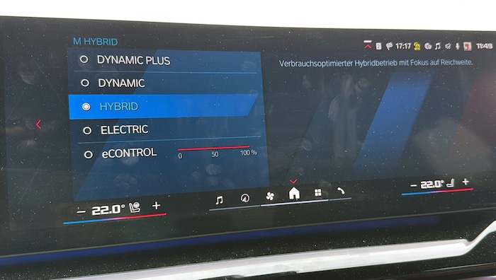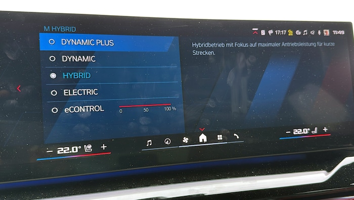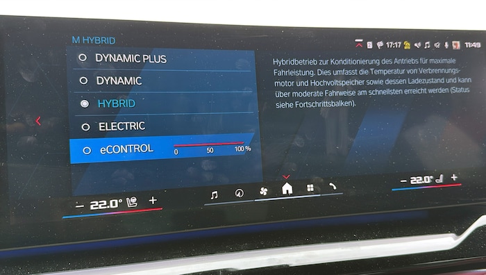 Andere Fahrmodi sorgen dafür, dass man mit Verbrenneranbindung das bekommt, was man will, also dafür, dass die Batterie leergefahren wird oder eben nicht – weil nur mit Strom im Akku ist die volle Leistung verfügbar.